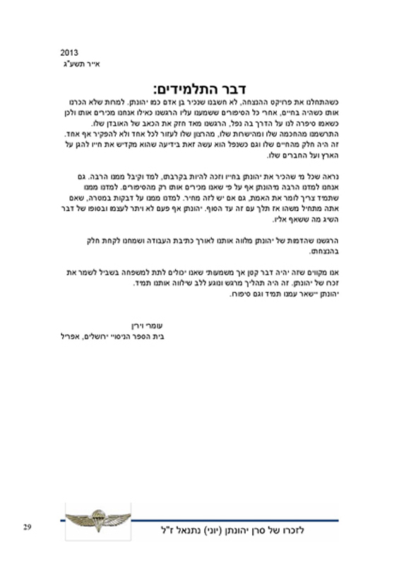 חוברת תלמידים לזכרו