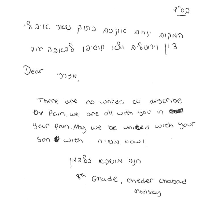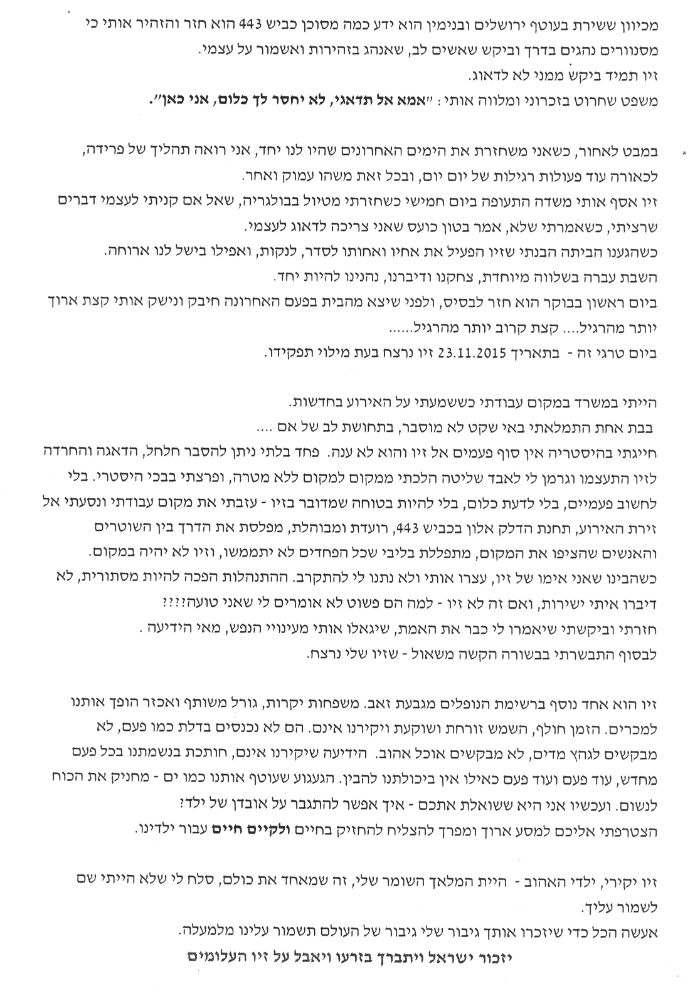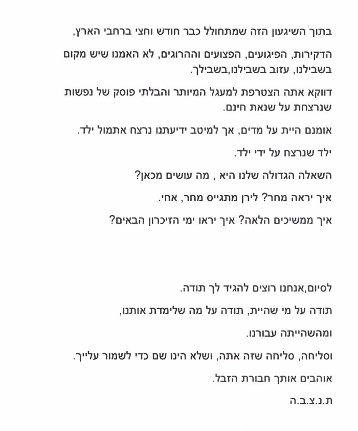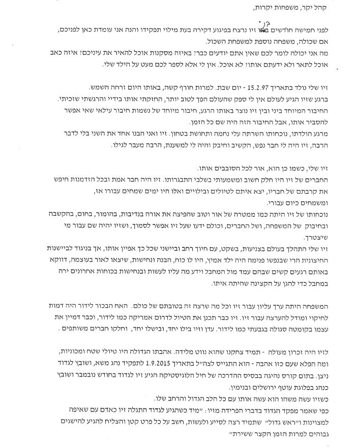 דברים שנשאה אמו 5 חודשים לאחר נפילתו