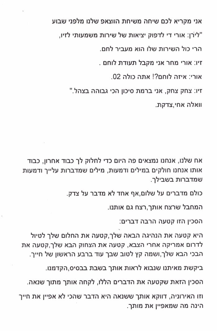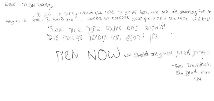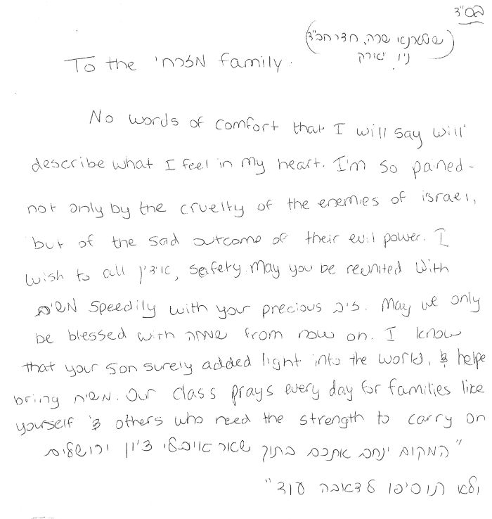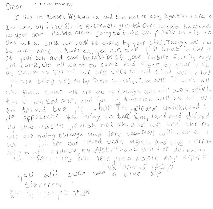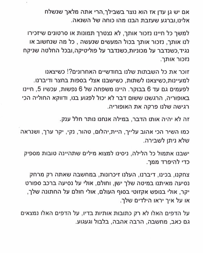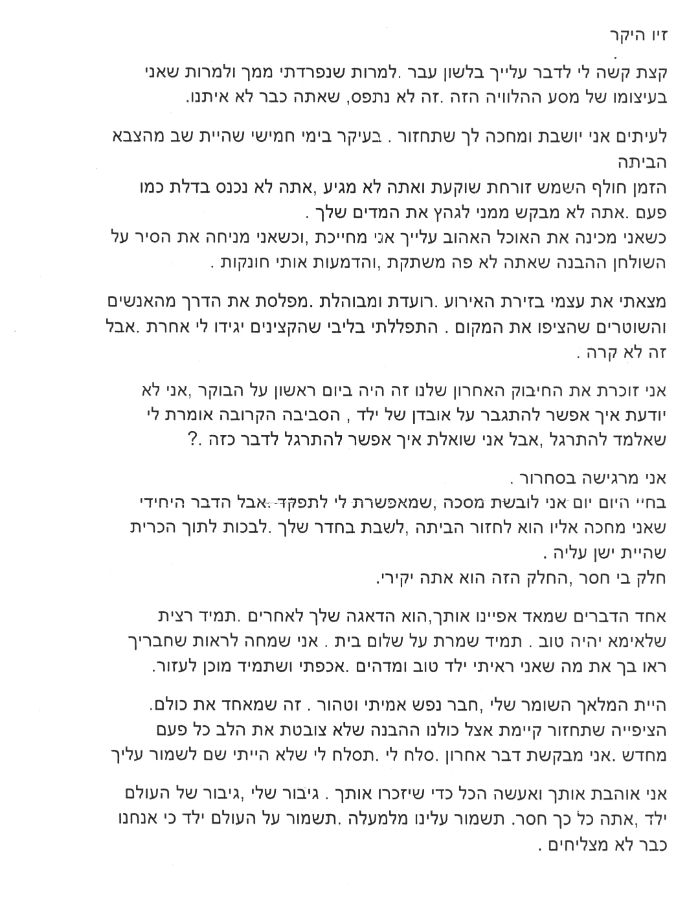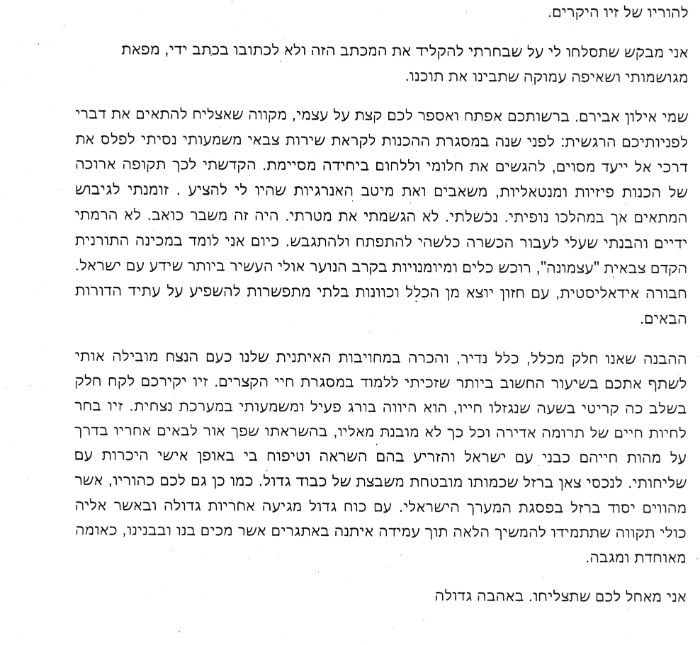 מכתבו של אילון אבירם למשפחה