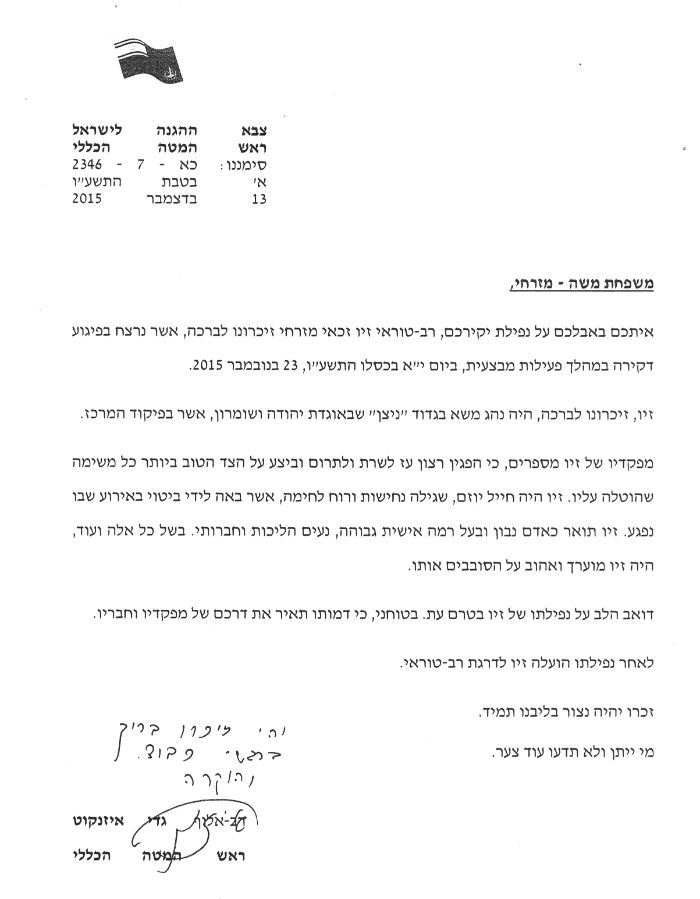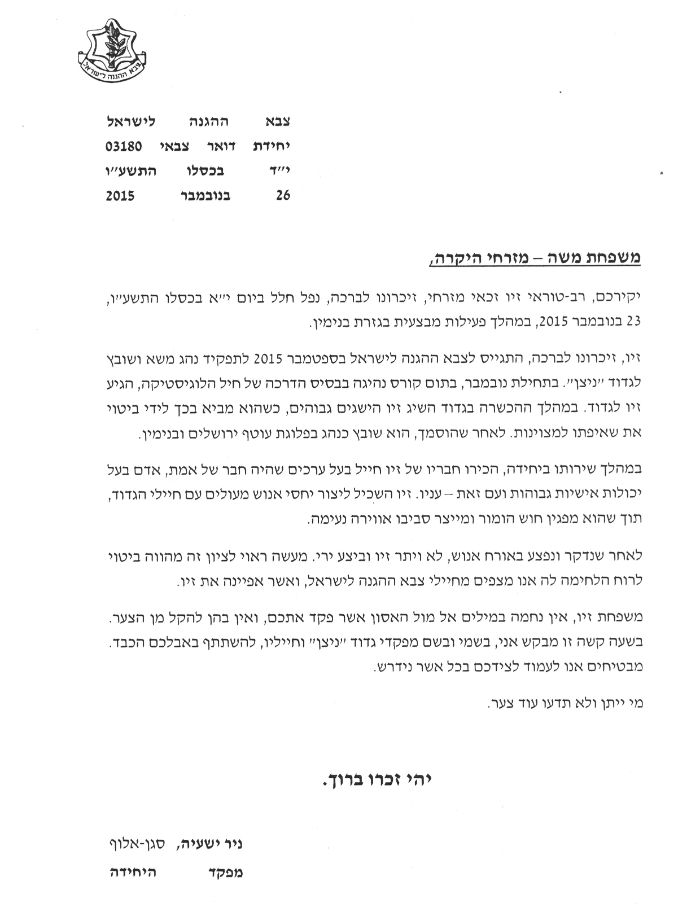 מכתב הרמטכ"ל למשפחה